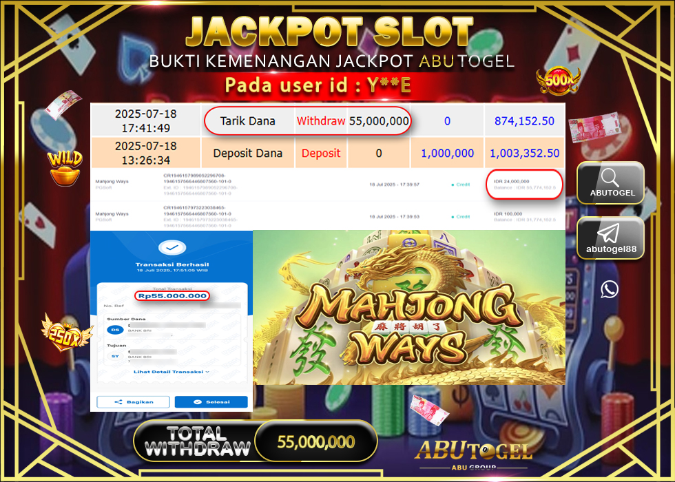 3 min readBukti Jackpot ABUTOGEL Slot Online Sabtu 19 Juli 2025 – ABUTOGEL adalah situs slot gacor maxwin terpercaya. Berikut ini kami berikan info bukti jackpot member ABUTOGEL yang sudah kami bayar lunas dalam permainan slot gacor.