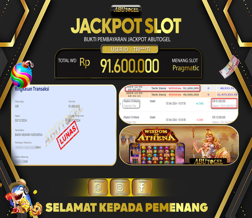 3 min readBukti Jackpot ABUTOGEL Slot Online Selasa 03 Desember 2024 – ABUTOGEL adalah situs slot gacor maxwin terpercaya. Berikut ini kami berikan info buktu jackpot member ABUTOGEL yang sudah kami bayar lunas dalam permainan slot gacor.