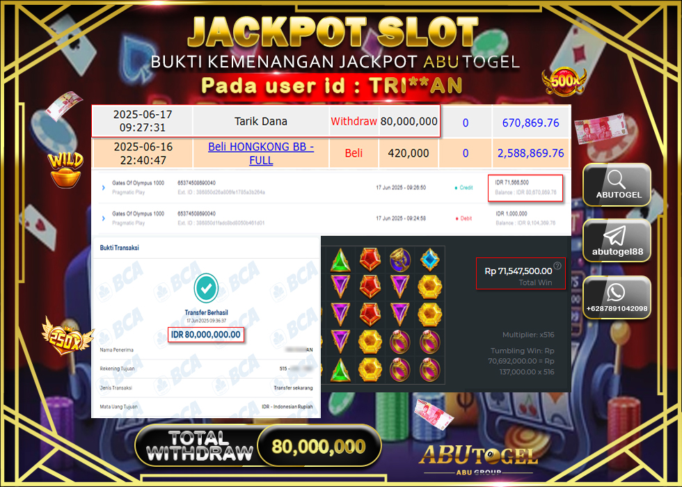 Bukti Pembayaran Jackpot Member ABUTOGEL