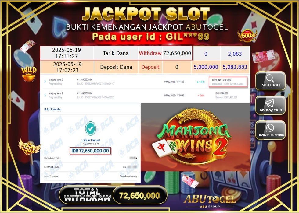 3 min readBukti Jackpot ABUTOGEL Slot Online Senin 19 Mei 2025 – ABUTOGEL adalah situs slot gacor maxwin terpercaya. Berikut ini kami berikan info buktu jackpot member ABUTOGEL yang sudah kami bayar lunas dalam permainan slot gacor.