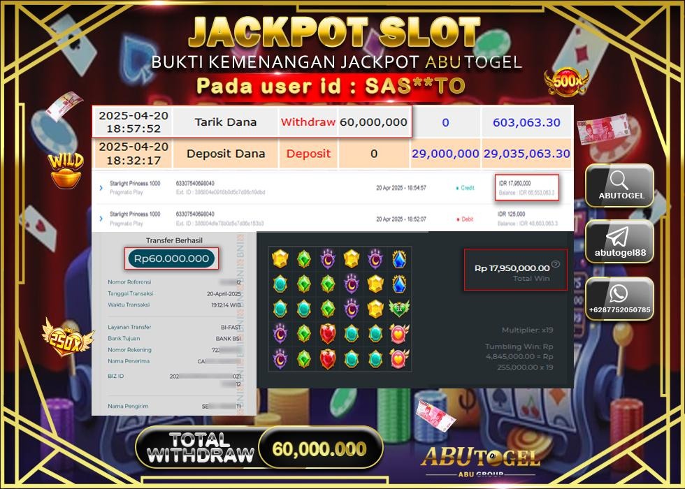 | TOTAL JACKPOT | Rp 60,603,063 | |