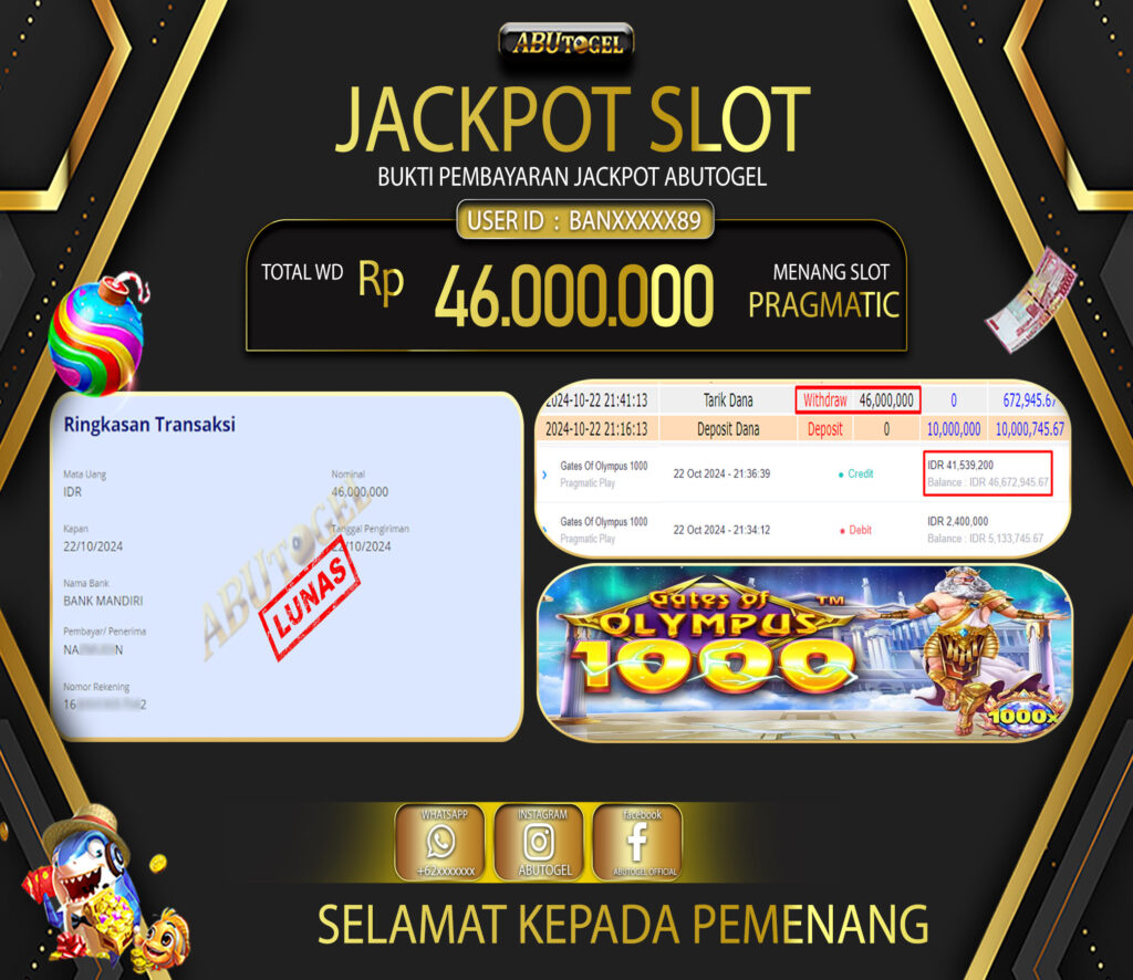 3 min readBukti Jackpot ABUTOGEL Slot Online Rabu 23 Oktober 2024 – ABUTOGEL adalah situs slot gacor maxwin terpercaya. Berikut ini kami berikan info buktu jackpot member ABUTOGEL yang sudah kami bayar lunas dalam permainan slot gacor.