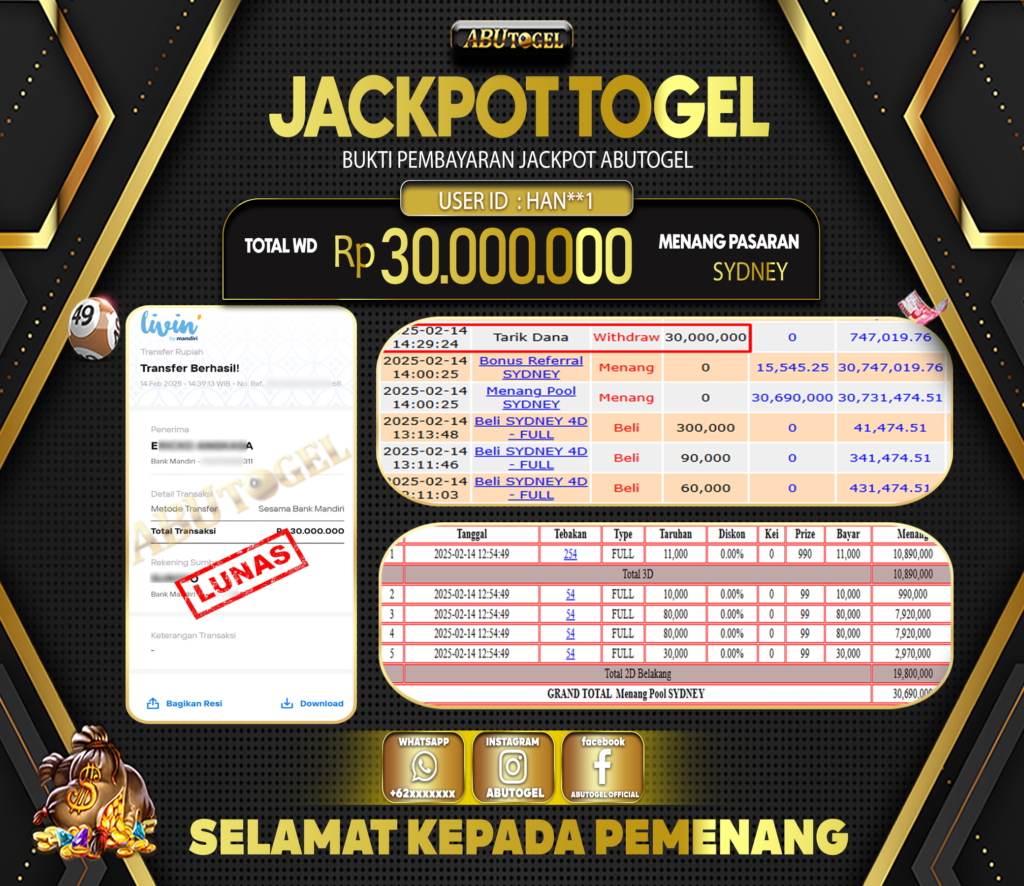 Bukti Pembayaran Jackpot Member ABUTOGEL