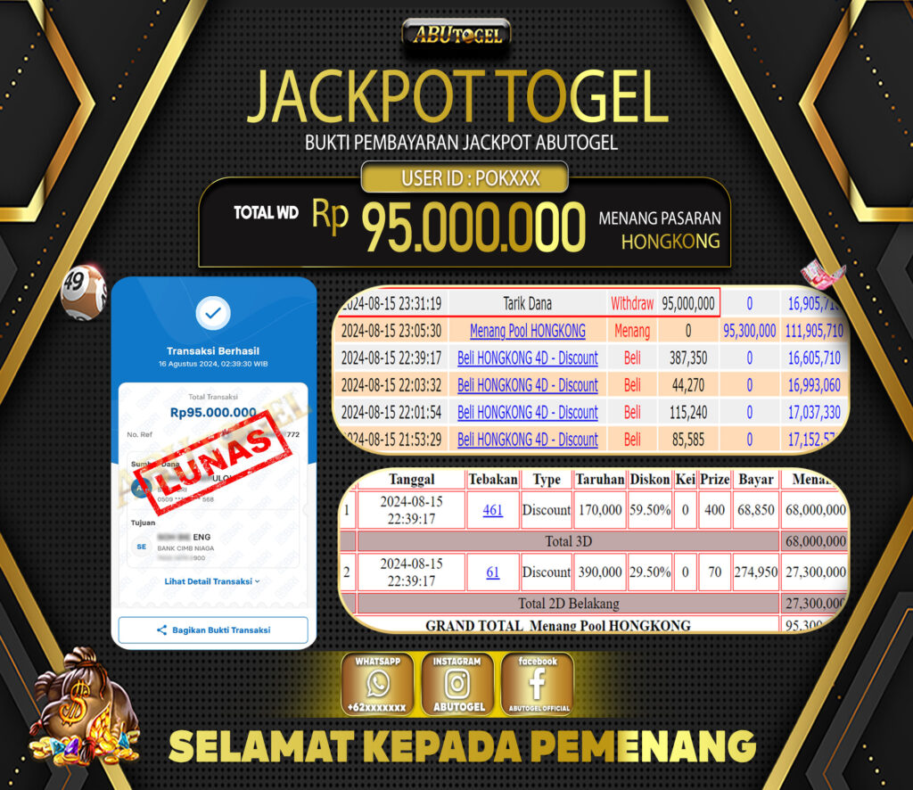 Bukti Jackpot Togel Online ABUTOGEL Kamis 15 Agustus 2024 – ABUTOGEL adalah bo togel onlinne terpercaya. Berikut ini kami berikan info buktu jackpot member ABUTOGEL yang sudah kami bayar lunas dalam permainan togel online.