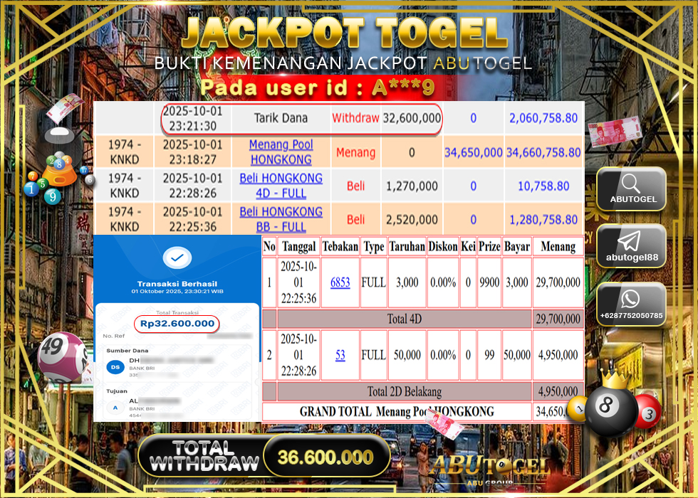 Bukti Jackpot Togel Online Abutogel Rabu 01 Oktober 2025