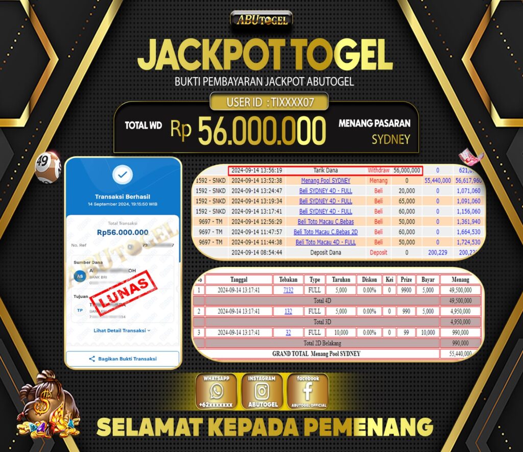 Bukti Jackpot Togel Online Abutogel Minggu 15 September 2024