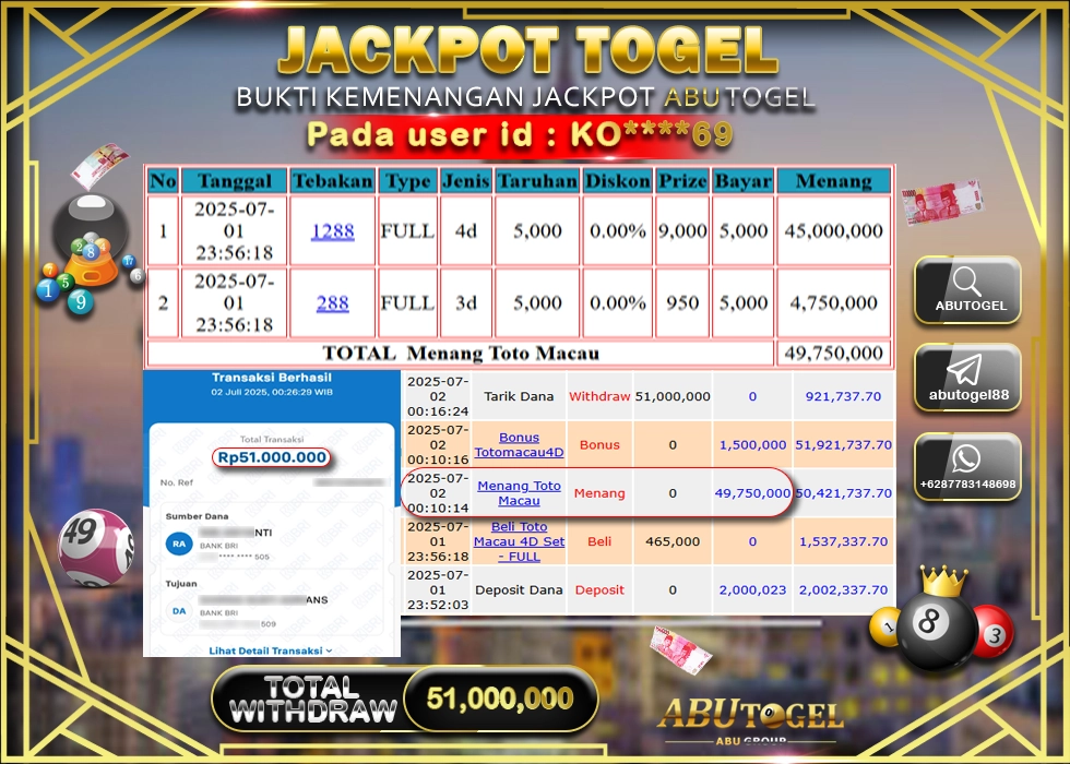 Bukti Jackpot Togel Online Abutogel Rabu 02 Juli 2025