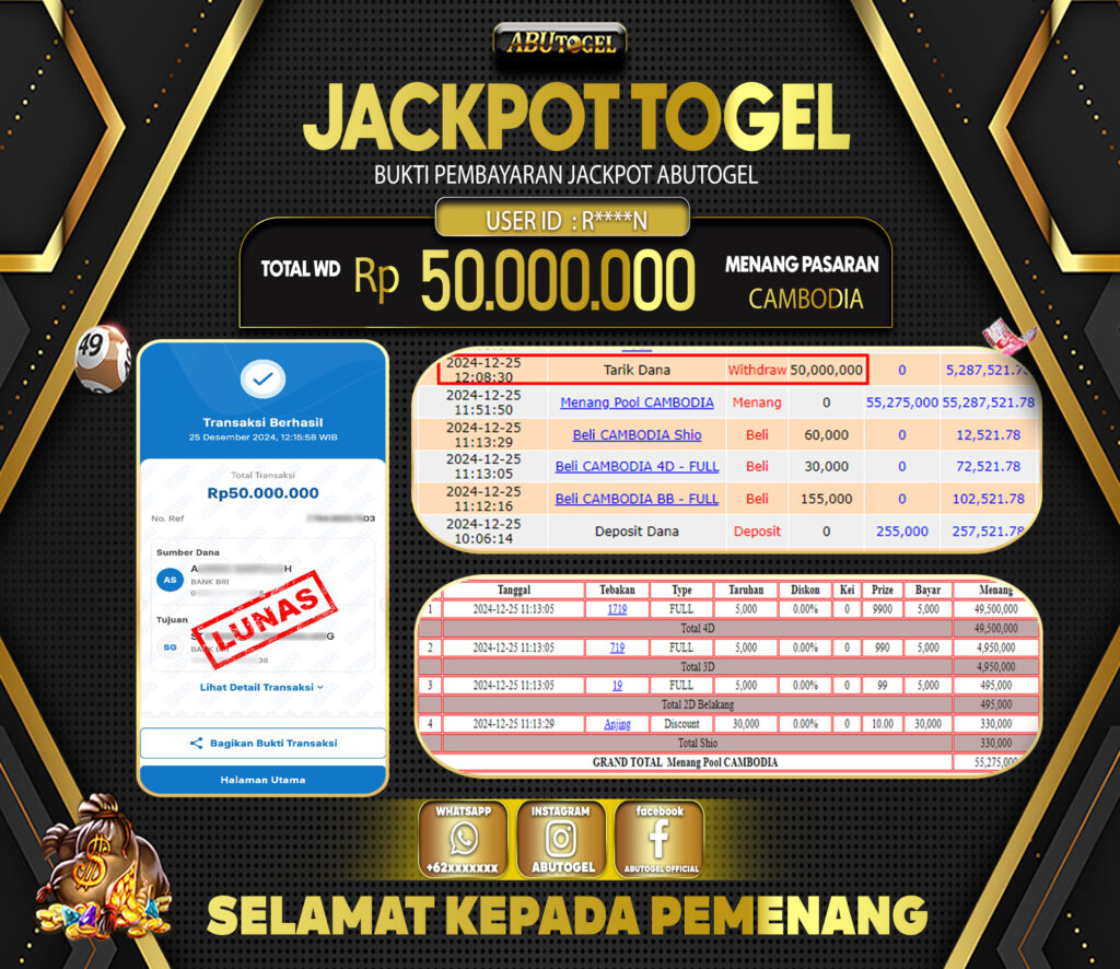 Berikut adalah Bukti Jackpot Togel Online ABUTOGEL Rabu, 25 Desember 2024 :