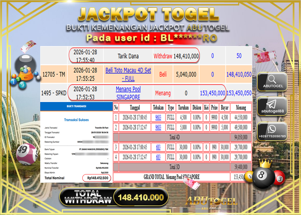 Berikut adalah Bukti Jackpot Togel Online ABUTOGEL Rabu 28 January 2026 :