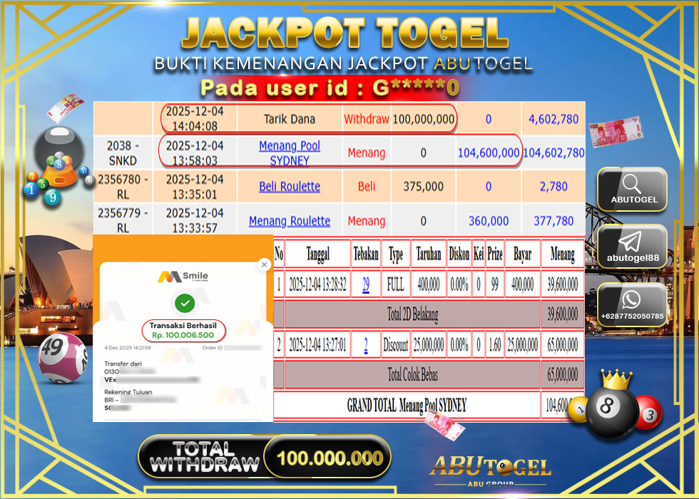 Bukti Jackpot Togel Online Abutogel Sabtu 06 Desember 2025