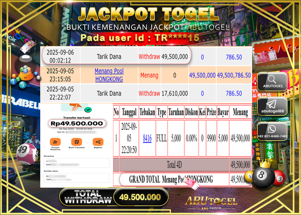 Berikut adalah Bukti Jackpot Togel Online ABUTOGEL Sabtu 06 September 2025 :