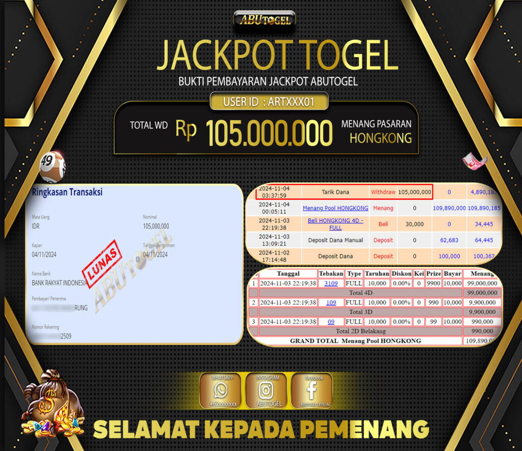 Berikut adalah Bukti Jackpot Togel Online ABUTOGEL Senin, 04 November 2024 :