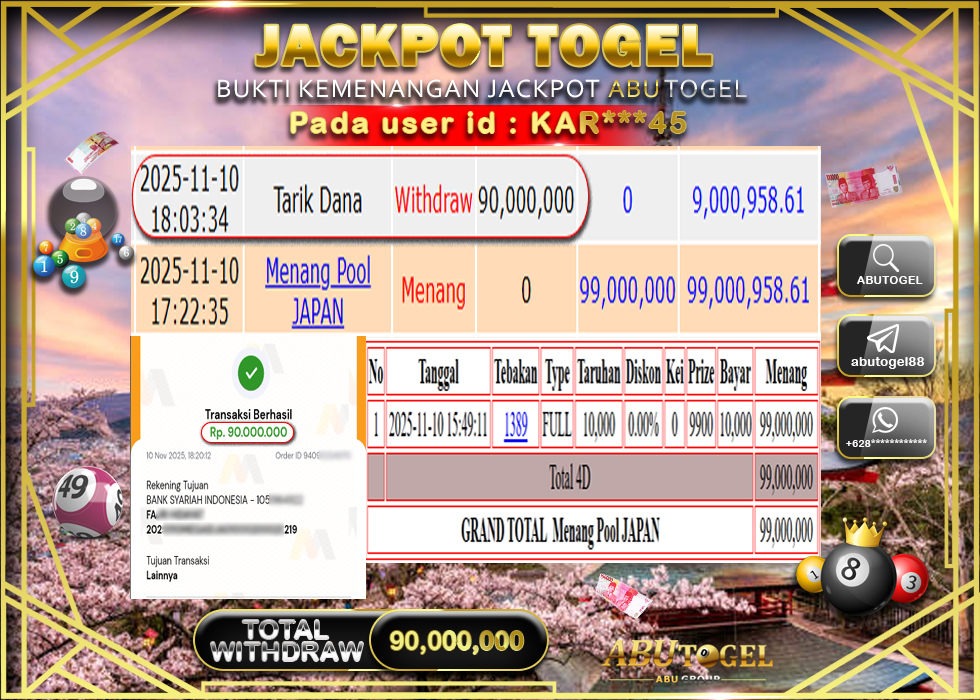 Berikut adalah Bukti Jackpot Togel Online ABUTOGEL Senin 10 November 2025 :