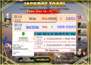 3 min readBukti Jackpot Togel Online ABUTOGEL Senin 24 November 2025 – ABUTOGEL adalah bo togel onlinne terpercaya. Berikut ini kami berikan info bukti jackpot member ABUTOGEL yang sudah kami bayar lunas dalam permainan togel online.