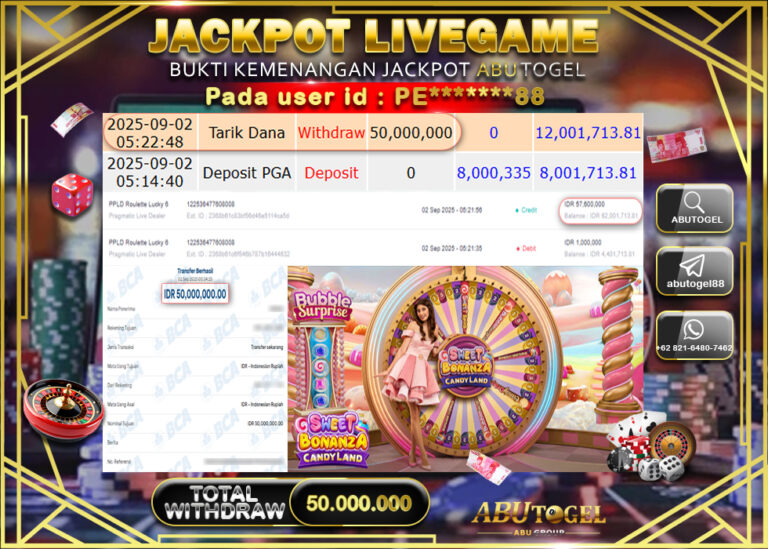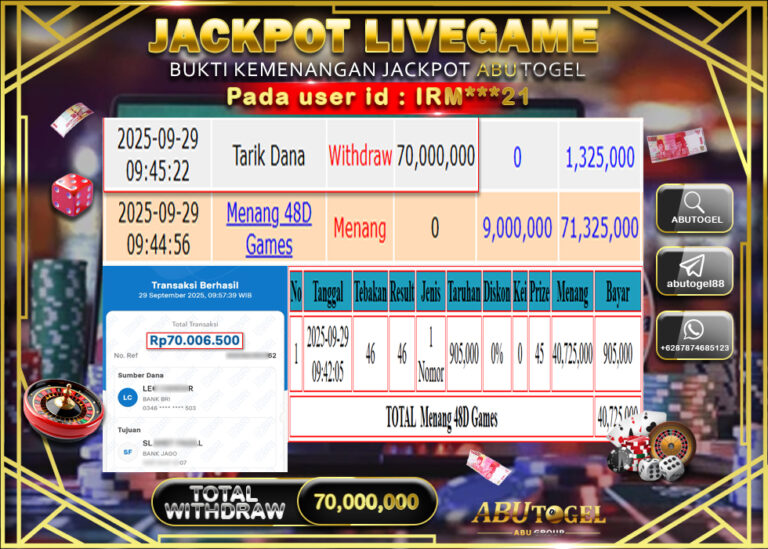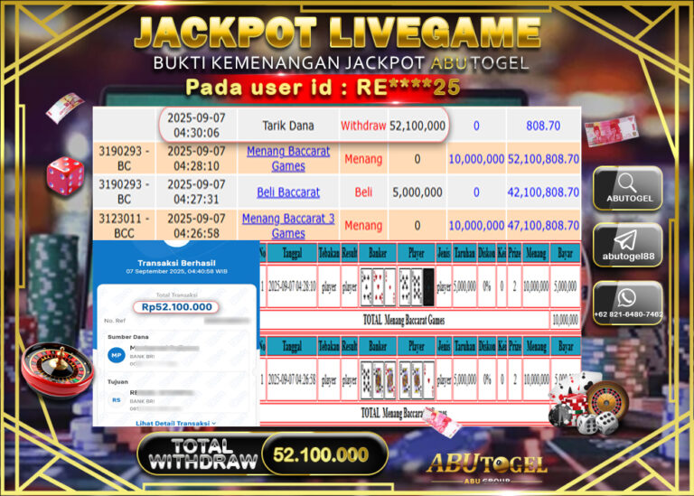Bukti Jackpot ABUTOGEL Live Casino Minggu 07 September 2025 - ABUTOGEL adalah situs live casino terpercaya. Berikut ini kami berikan info...
