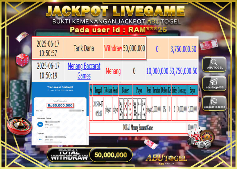 Bukti Jackpot ABUTOGEL Live Casino Selasa 17 Juni 2025 - ABUTOGEL adalah situs live casino terpercaya. Berikut ini kami berikan...