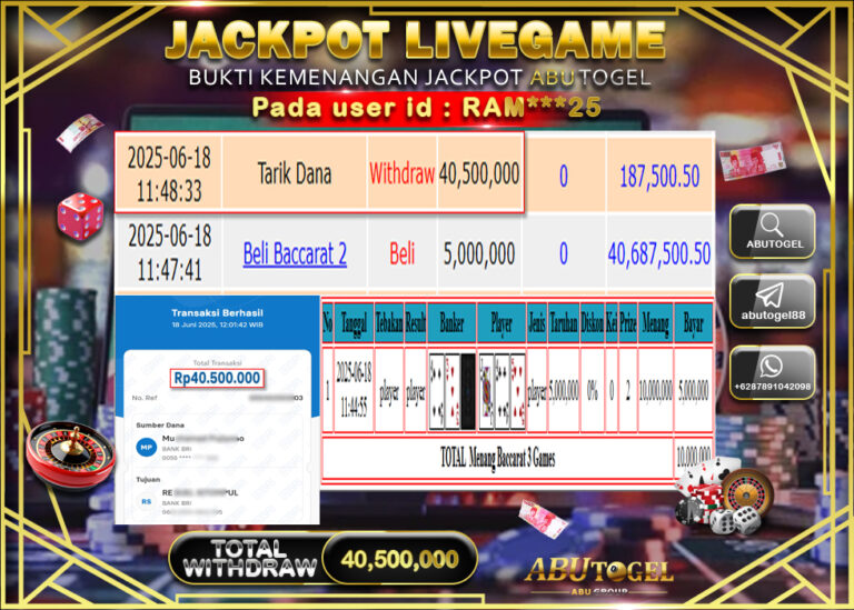 Bukti Jackpot ABUTOGEL Live Casino Rabu 18 Juni 2025 - ABUTOGEL adalah situs live casino terpercaya. Berikut ini kami berikan...