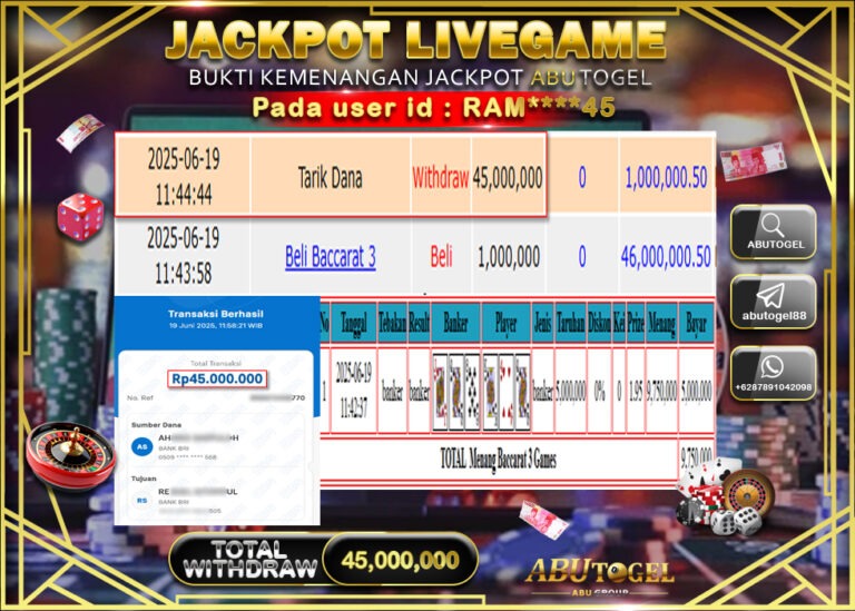 Bukti Jackpot ABUTOGEL Live Casino Kamis 19 Juni 2025 - ABUTOGEL adalah situs live casino terpercaya. Berikut ini kami berikan...