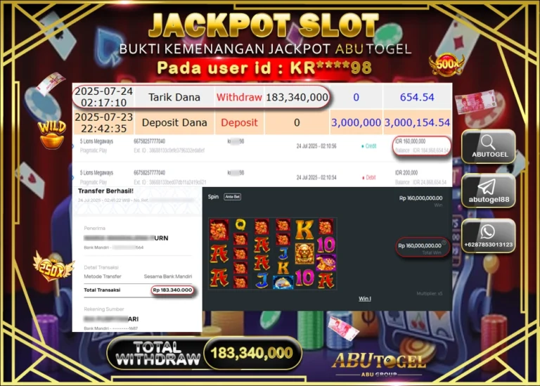 Bukti Jackpot ABUTOGEL Slot Online Kamis 31 Juli 2025 - ABUTOGEL adalah situs slot gacor maxwin terpercaya. Berikut ini kami berikan...