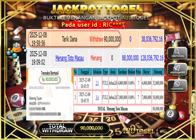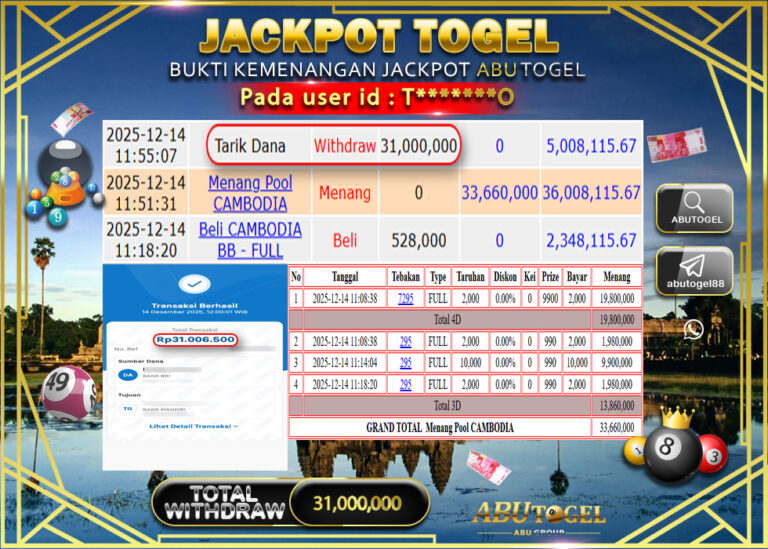 Bukti Jackpot Togel Online ABUTOGEL Minggu 14 Desember 2025 - ABUTOGEL adalah bo togel onlinne terpercaya. Berikut ini kami berikan...