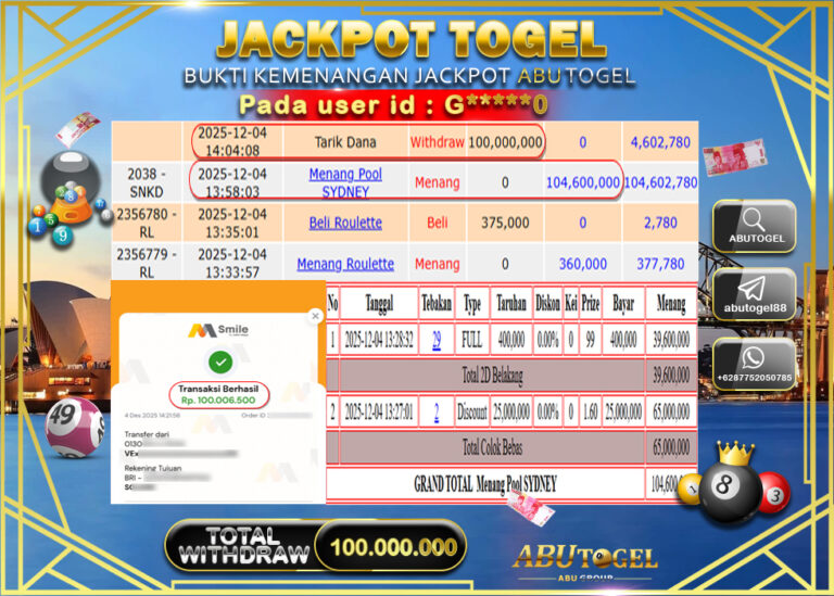 Bukti Jackpot Togel Online ABUTOGEL Kamis 04 Desember 2025 - ABUTOGEL adalah bo togel onlinne terpercaya. Berikut ini kami berikan...