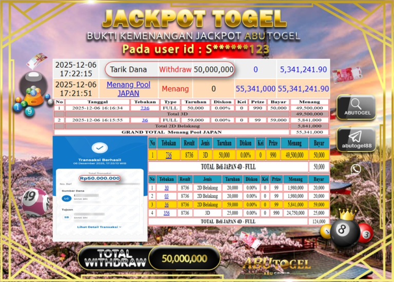 Bukti Jackpot Togel Online ABUTOGEL Sabtu 06 Desember 2025 - ABUTOGEL adalah bo togel onlinne terpercaya. Berikut ini kami berikan...