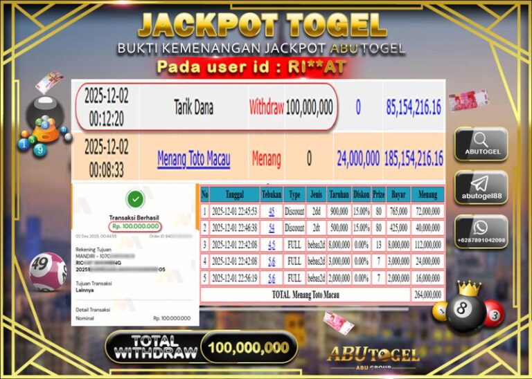 Bukti Jackpot Togel Online ABUTOGEL Selasa 02 Desember 2025 - ABUTOGEL adalah bo togel onlinne terpercaya. Berikut ini kami berikan...