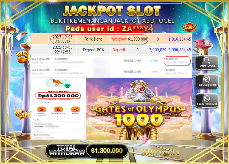 Bukti Jackpot ABUTOGEL Slot Online Jumat 03 Oktober 2025 - ABUTOGEL adalah situs slot gacor maxwin terpercaya. Berikut ini kami...