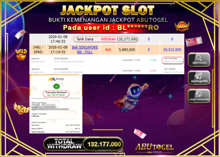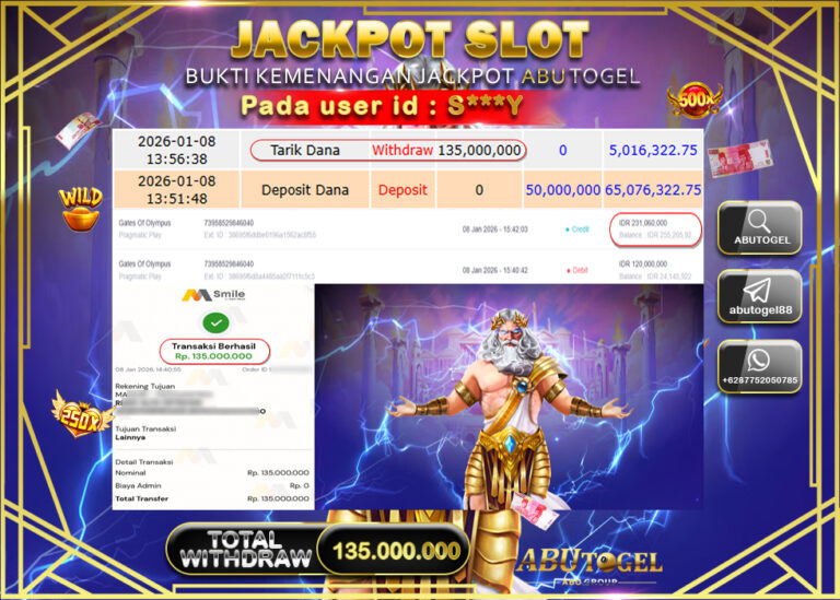 Bukti Jackpot Slot Online ABUTOGEL Kamis 08 January 2026 - ABUTOGEL adalah bo togel onlinne terpercaya. Berikut ini kami berikan...