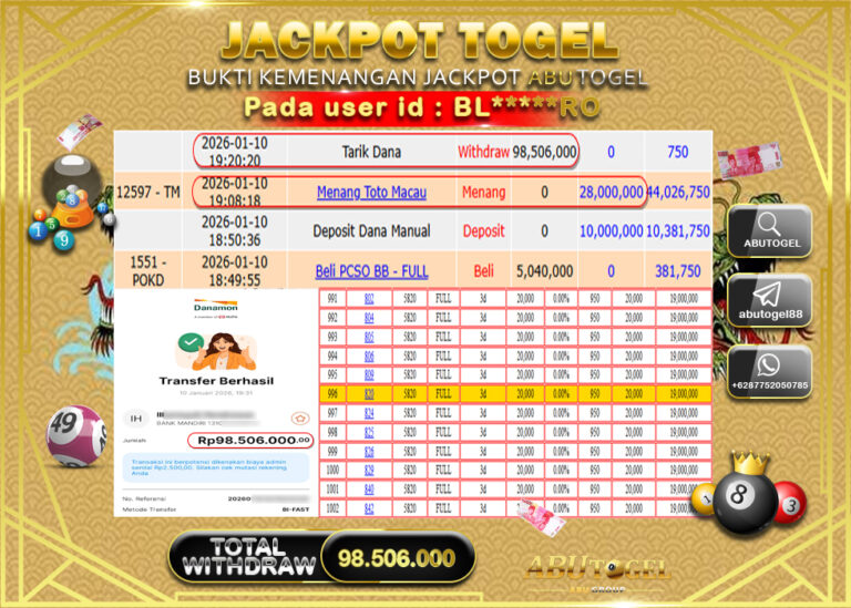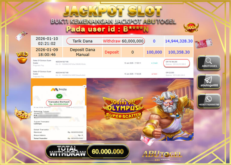 Bukti Jackpot Slot Online ABUTOGEL Sabtu 10 January 2026 - ABUTOGEL adalah bo togel onlinne terpercaya. Berikut ini kami berikan...