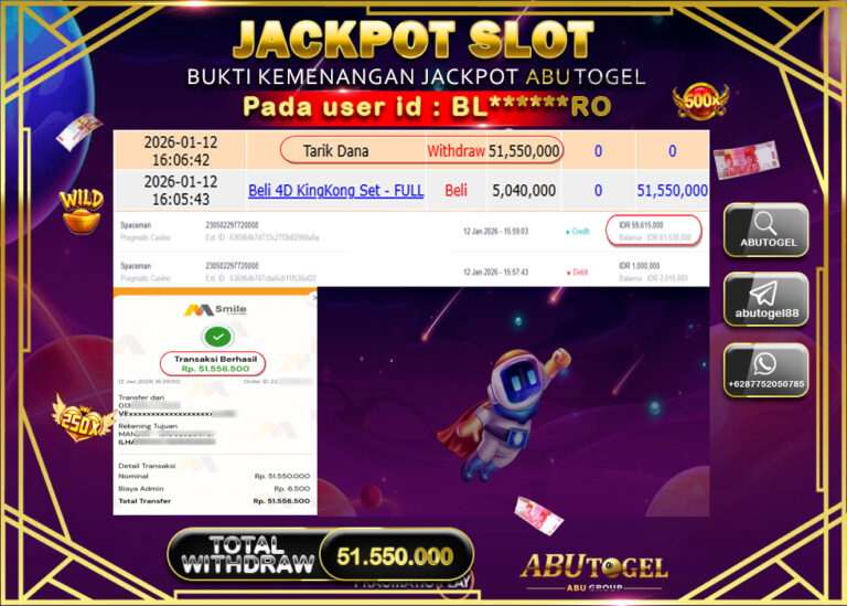 Bukti Jackpot Slot Online ABUTOGEL Senin 12 January 2026 - ABUTOGEL adalah bo togel onlinne terpercaya. Berikut ini kami berikan...