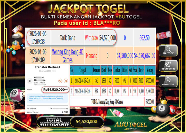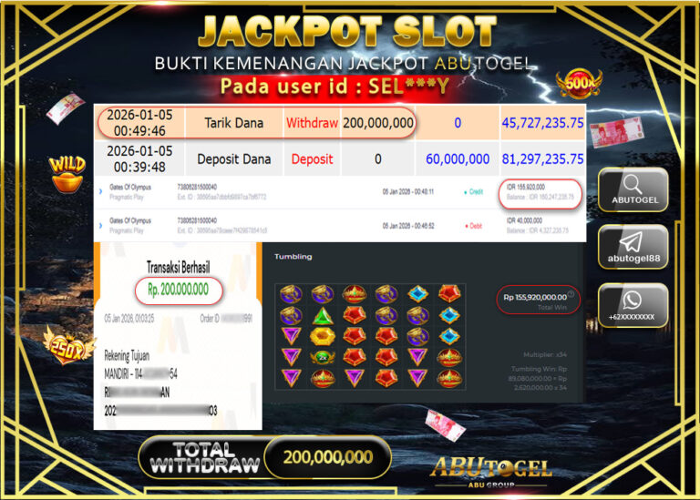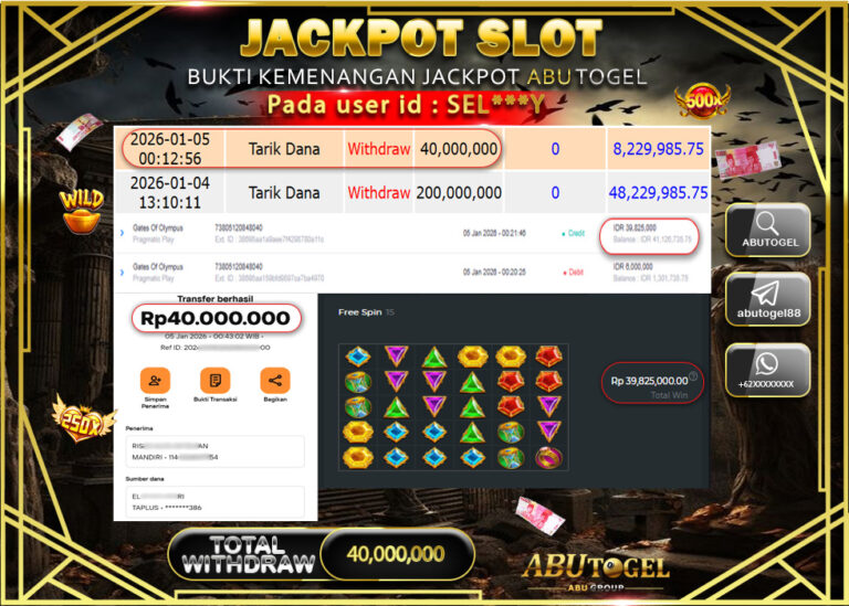 Bukti Jackpot Slot Online ABUTOGEL Senin 05 January 2026 - ABUTOGEL adalah bo togel onlinne terpercaya. Berikut ini kami berikan...