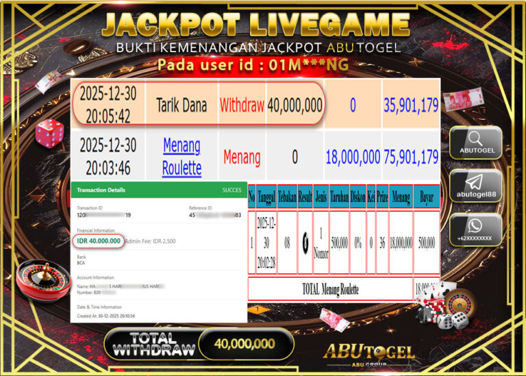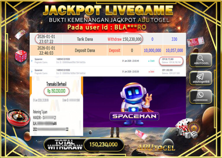 Bukti Jackpot ABUTOGEL Live Casino Jumat 02 January 2026 - ABUTOGEL adalah situs live casino terpercaya. Berikut ini kami berikan...