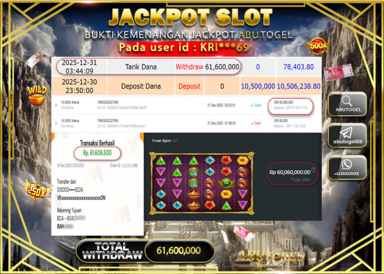 Bukti Jackpot Slot Online ABUTOGEL Senin 05 January 2026 - ABUTOGEL adalah bo togel onlinne terpercaya. Berikut ini kami berikan...