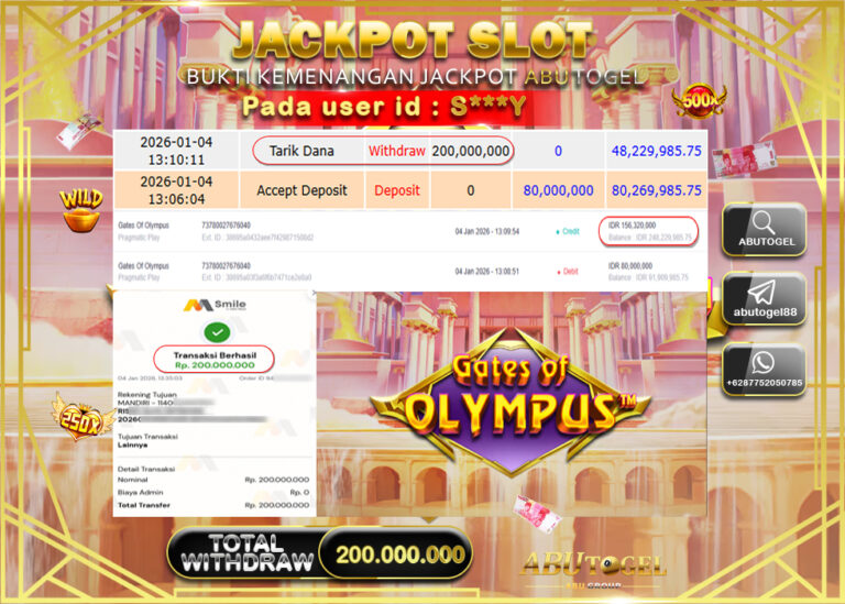 Bukti Jackpot Slot Online ABUTOGEL Minggu 04 January 2026 - ABUTOGEL adalah bo togel onlinne terpercaya. Berikut ini kami berikan...