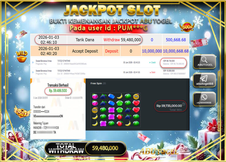 Bukti Jackpot Slot Online ABUTOGEL Sabtu 03 January 2026 - ABUTOGEL adalah bo togel onlinne terpercaya. Berikut ini kami berikan...