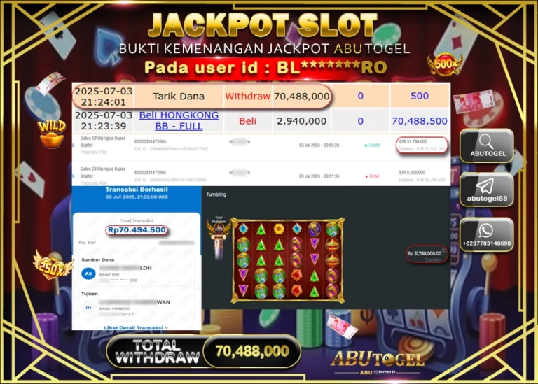 Bukti Jackpot ABUTOGEL Slot Online Kamis 03 Juli 2025 - ABUTOGEL adalah situs slot gacor maxwin terpercaya. Berikut ini kami berikan...