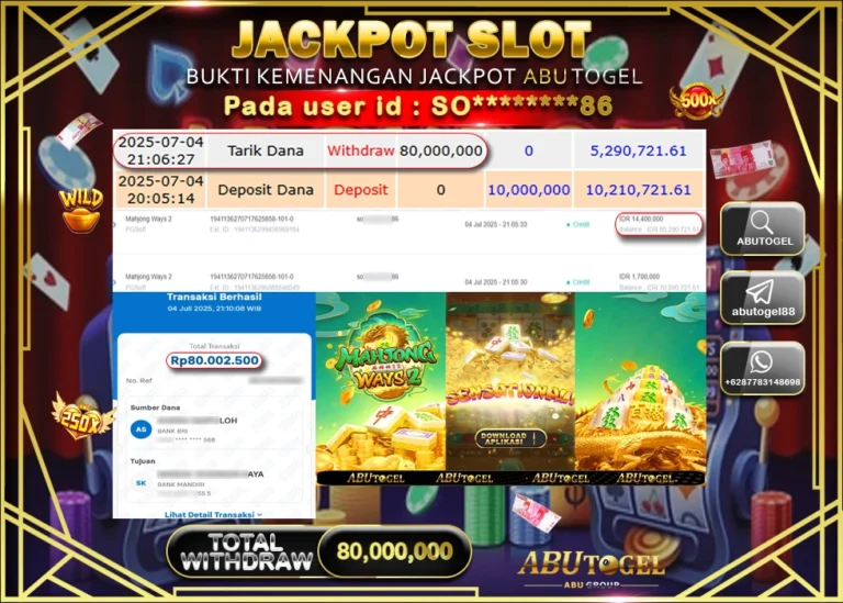 Bukti Jackpot ABUTOGEL Slot Online Jumat 04 Juli 2025 - ABUTOGEL adalah situs slot gacor maxwin terpercaya. Berikut ini kami berikan...