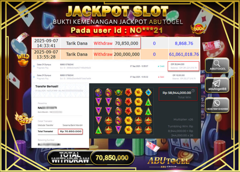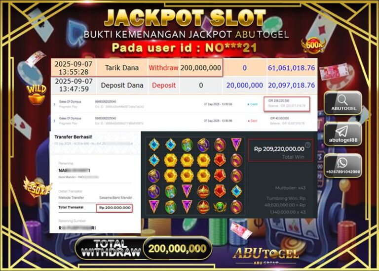 Bukti Jackpot ABUTOGEL Slot Online Minggu 07 September 2025 - ABUTOGEL adalah situs slot gacor maxwin terpercaya. Berikut ini kami...