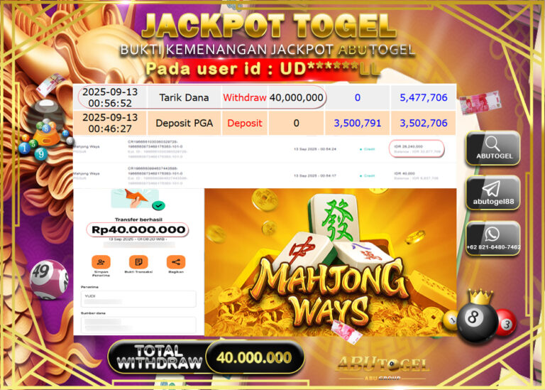 Bukti Jackpot ABUTOGEL Slot Online Sabtu 13 September 2025 - ABUTOGEL adalah situs slot gacor maxwin terpercaya. Berikut ini kami...