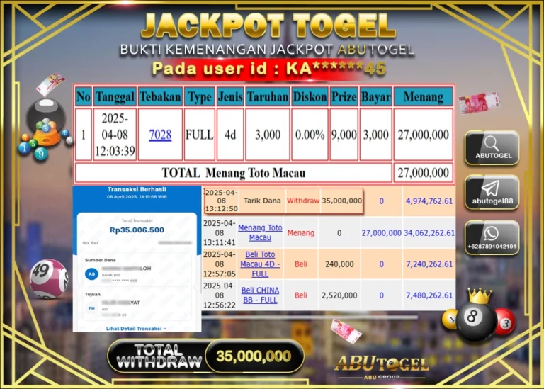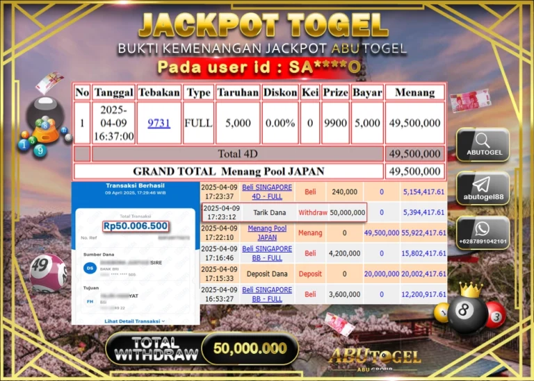 Bukti Jackpot Togel Online ABUTOGEL Minggu 20 April 2025 - ABUTOGEL adalah bo togel onlinne terpercaya. Berikut ini kami berikan info...